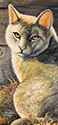 Interesting piece of folk art. Naïve cat painted directly on wood that has been beveled to form the frame. Signed Ruth Cummings. American, Early 1900's.