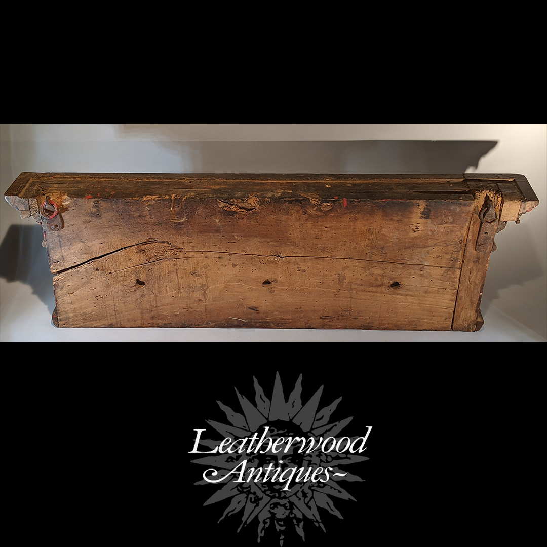 Early carvd ceiling finial decoration with great surface. English c. 1630. There is a later display stand that display it "upside-down". It resembles a Thistle (symbolism). Traces of old paint & primitive architectural elements.