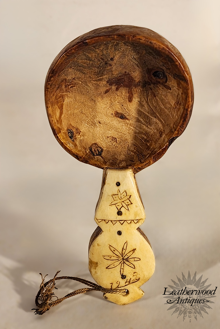 This wonderful Swedish spoon by Sami people (native to the Nordic region) with reindeer antler decorated & dated 1942 & Birch Burl wood.