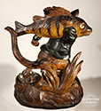 Dressed CAT carrying a big FISH on its back Black Forest most unusual sculpture inkwell. Swiss, Late 19th Century.