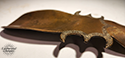Cutting Board with pair of horse heads. Initials KK inscribed on back lower right-hand.
