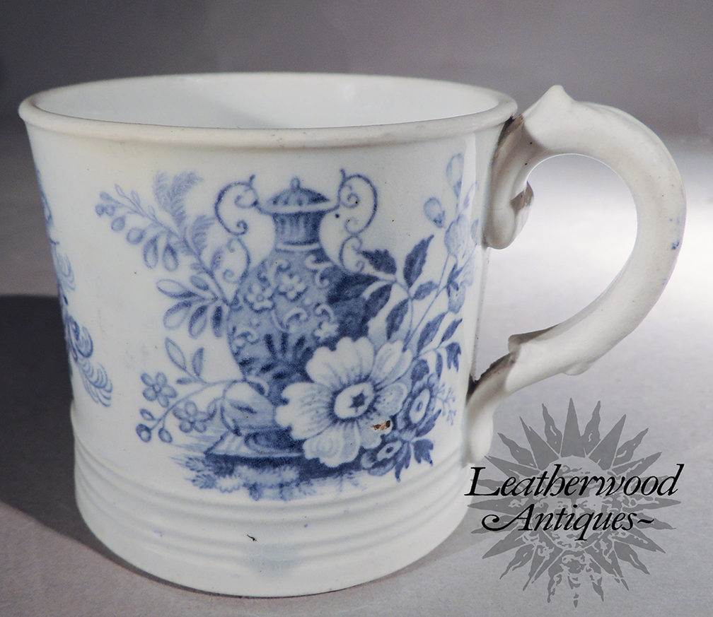 Blue & white transfer christening mug, "A Token of Affection". English c. 1820.