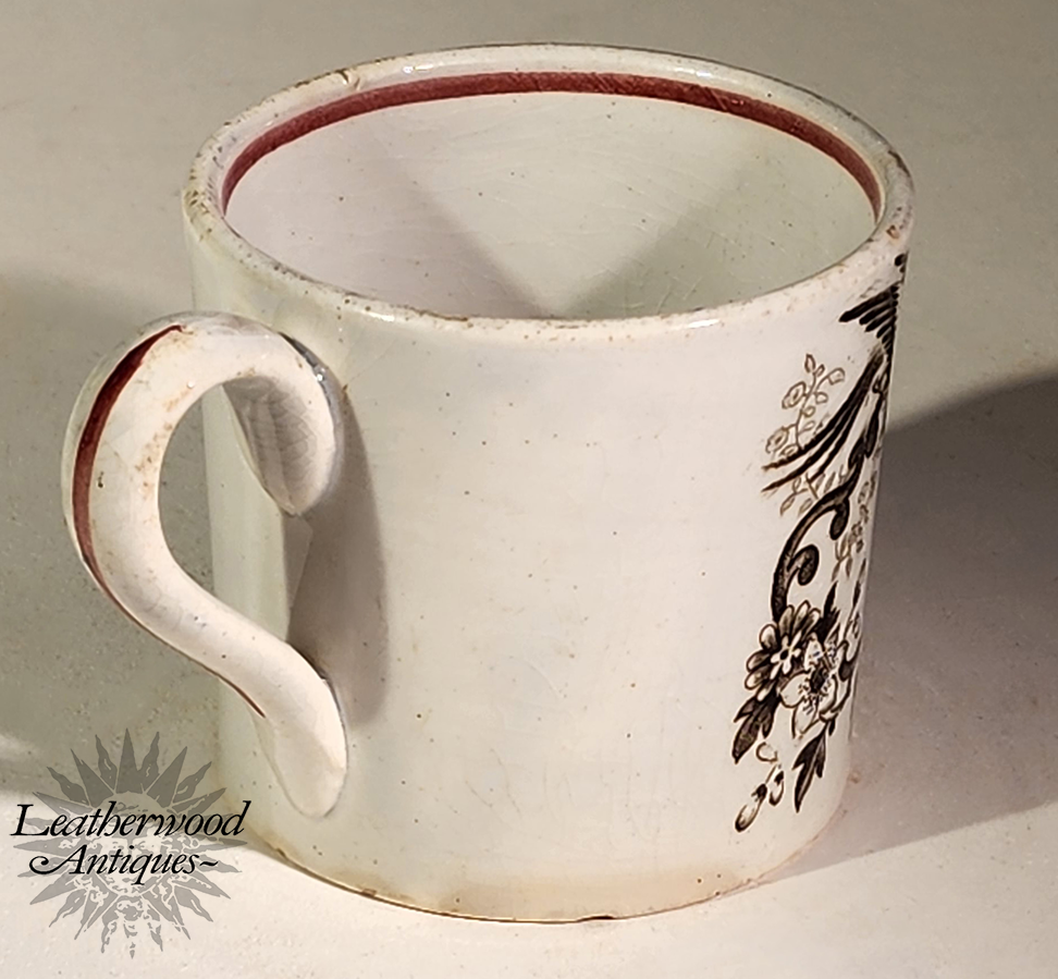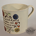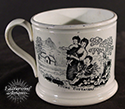 New Year's Gift ~ Staffordshire transfer child's mug. English c. 1860.