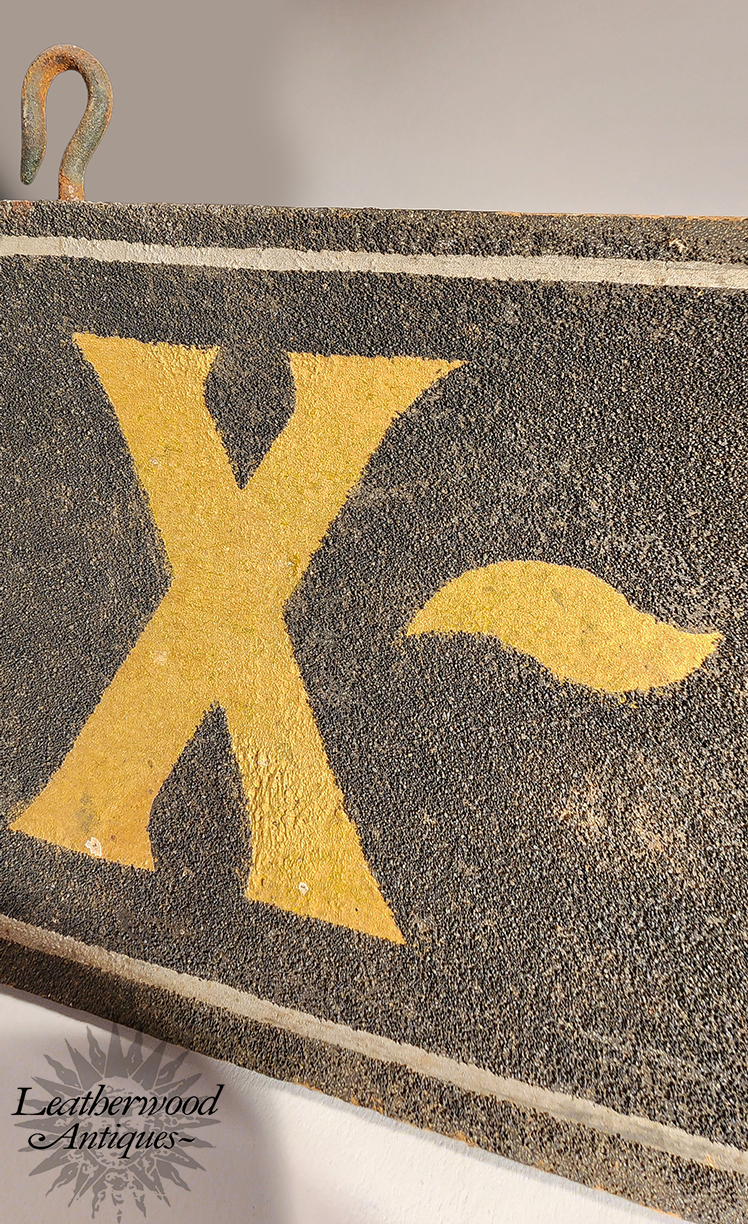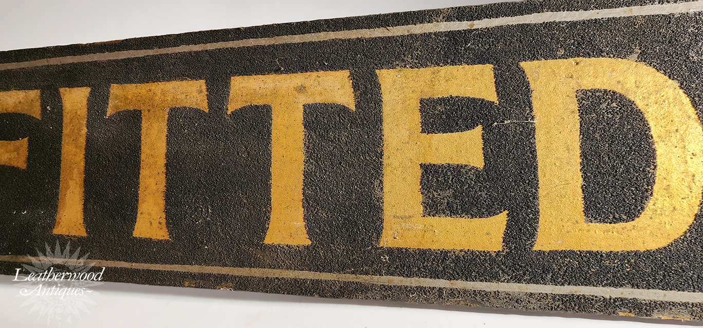 X‑RAY FITTED Sign — Striking wooden sign featuring vitreous‑enamel paint, where fine glass particles create a subtle, sparkling finish. A bold, eye‑catching piece of early 1900 advertising. American.