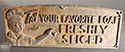Carved & painted whimsical fish sign ~ "You Should've Been Here Yesterday" !!! American.