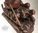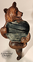 Momma bear with a good bear face. The head lifts-up to reveal a cavity for tobacco with a carved table top with three bear cubs. Nicely carved. Swiss c. 1890.