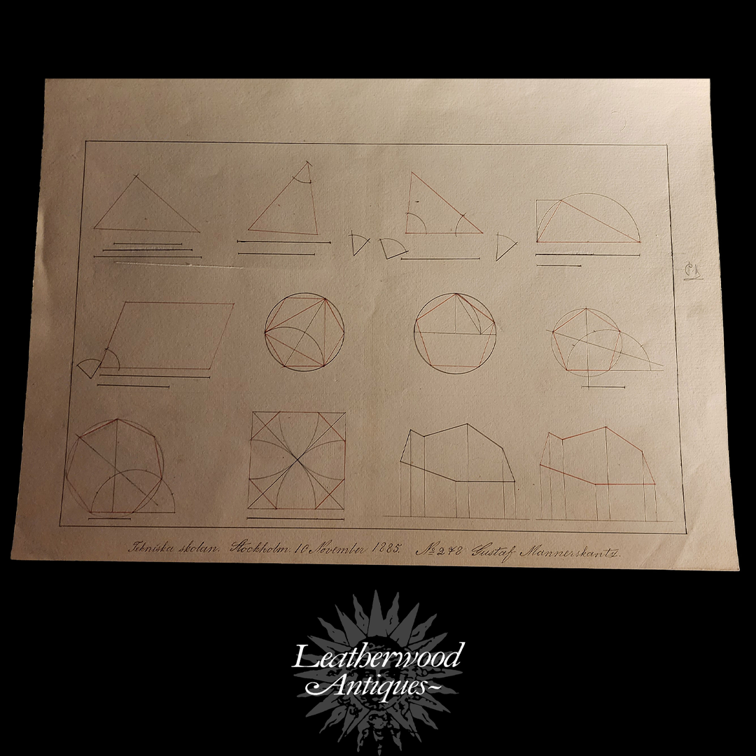 Three Swedish mechanistic drawing by Gustaf Mannerskants. c. 1885.