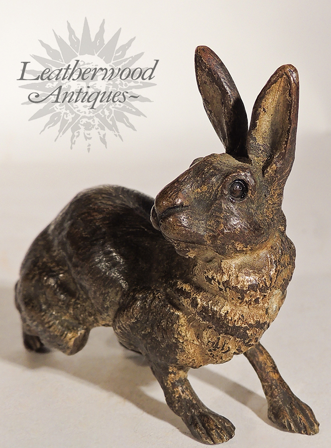 Tiny Vienna Bronze running rabbit. c. 1900.