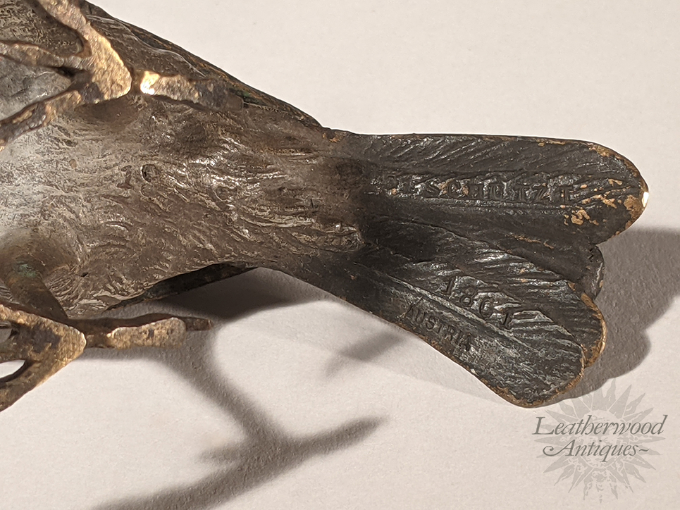 Elegant white swan Austrian Vienna Bronze. Stamped underneath ~ Austria / Geschutzt. c. 1900.