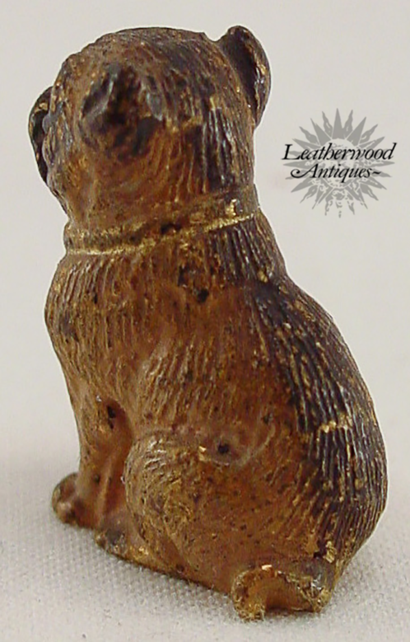 Miniature cute sitting pug Vienna Bronze dog. c. 1900.