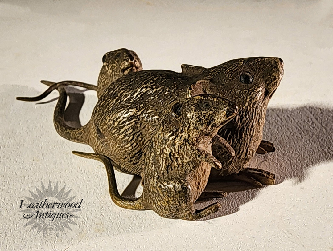 Mother mouse with two pups VB sculpture in good paint and condition and very well marked on the bottom with Geschutzt, Depose, and numbered. c. 1890.