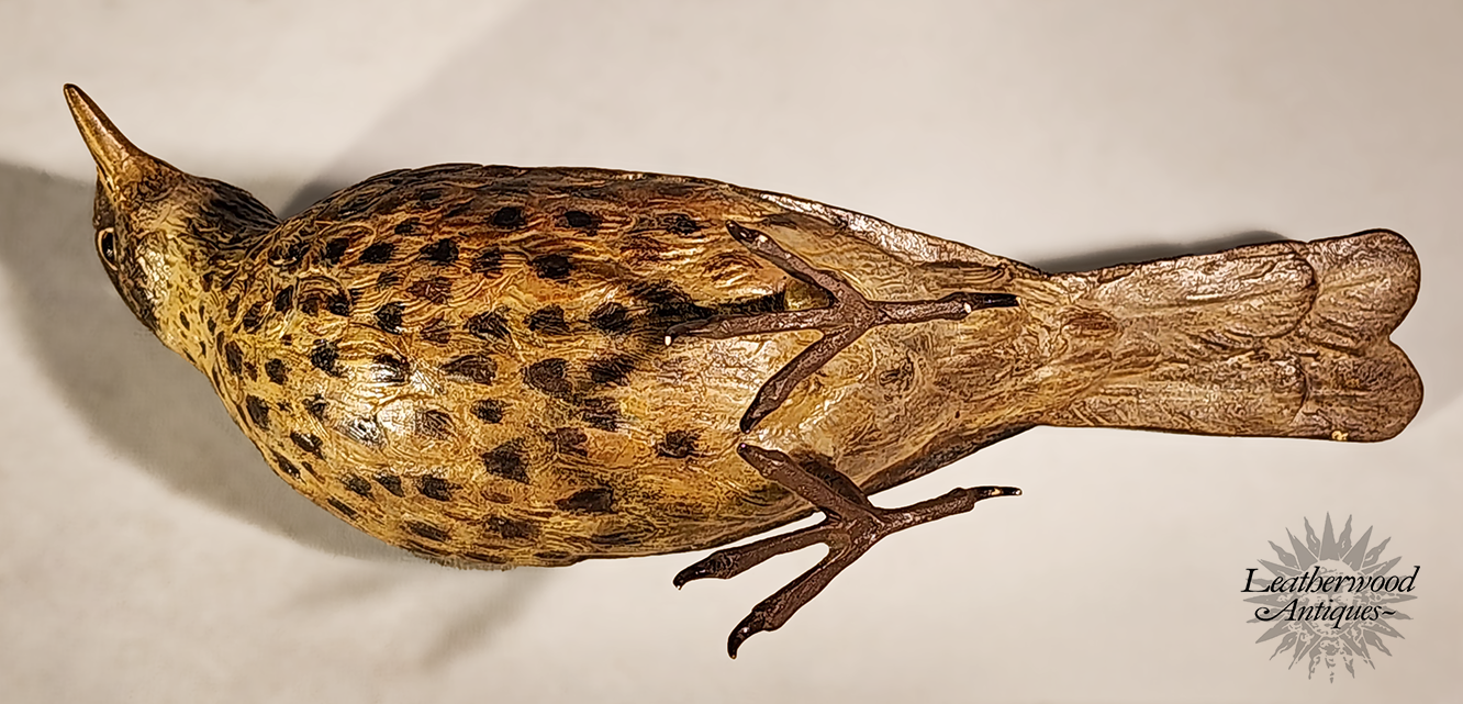 Cold-paint Vienna Bronze LIFE SIZE THRUSH songbird. c. 1900.