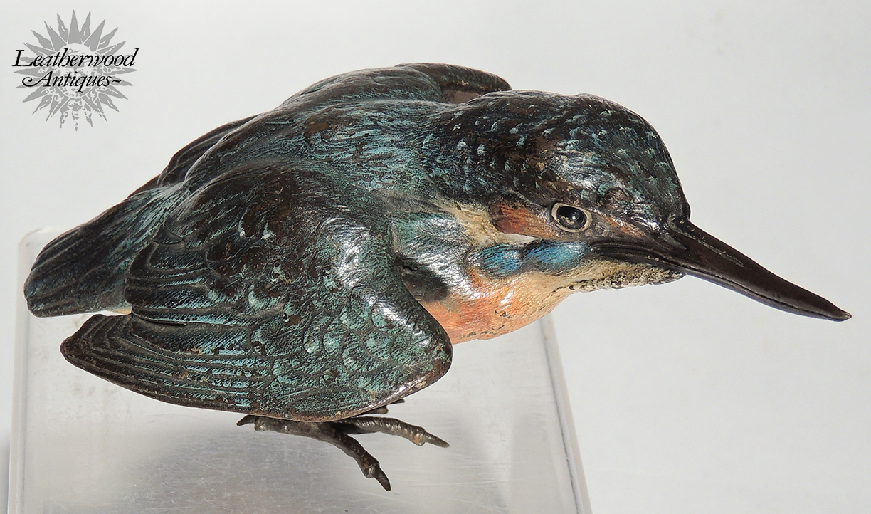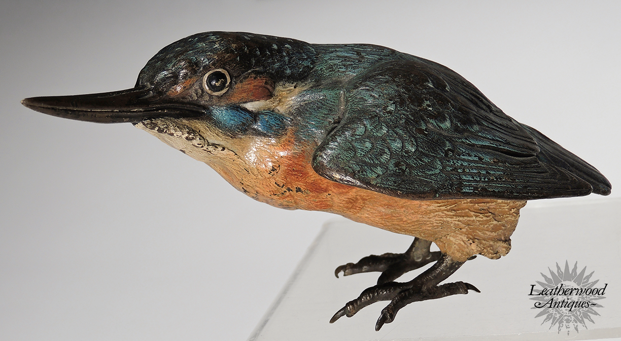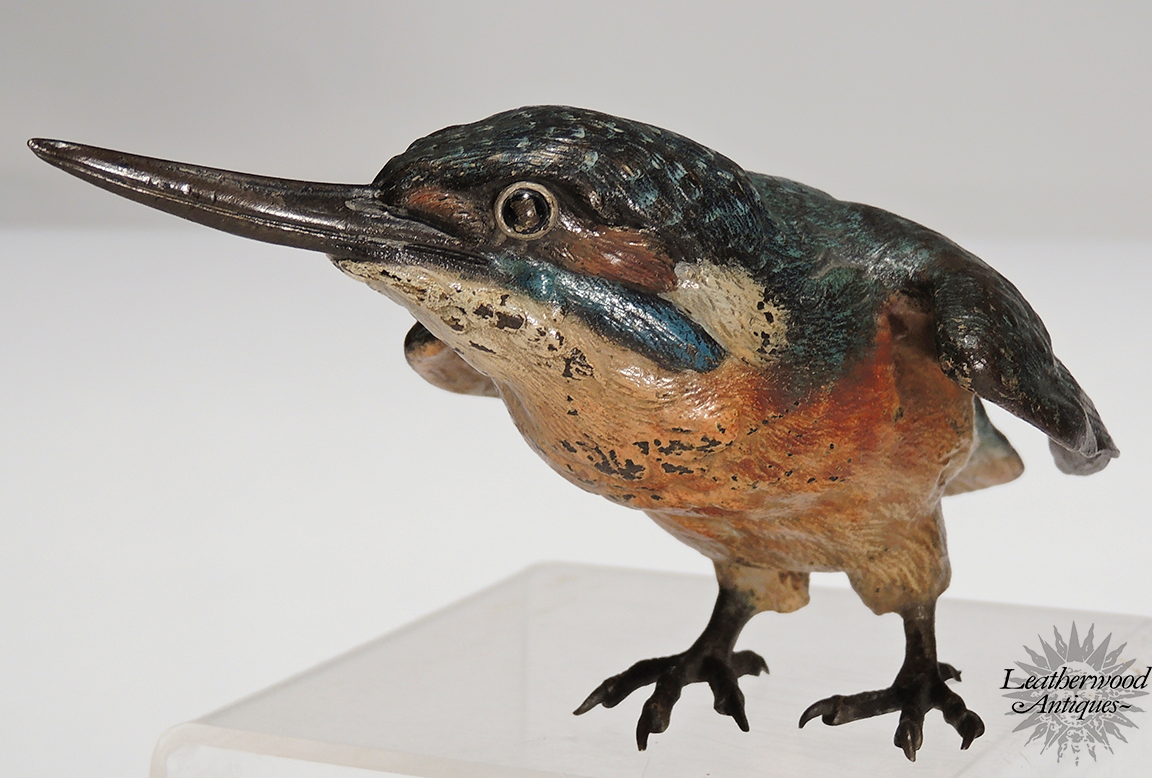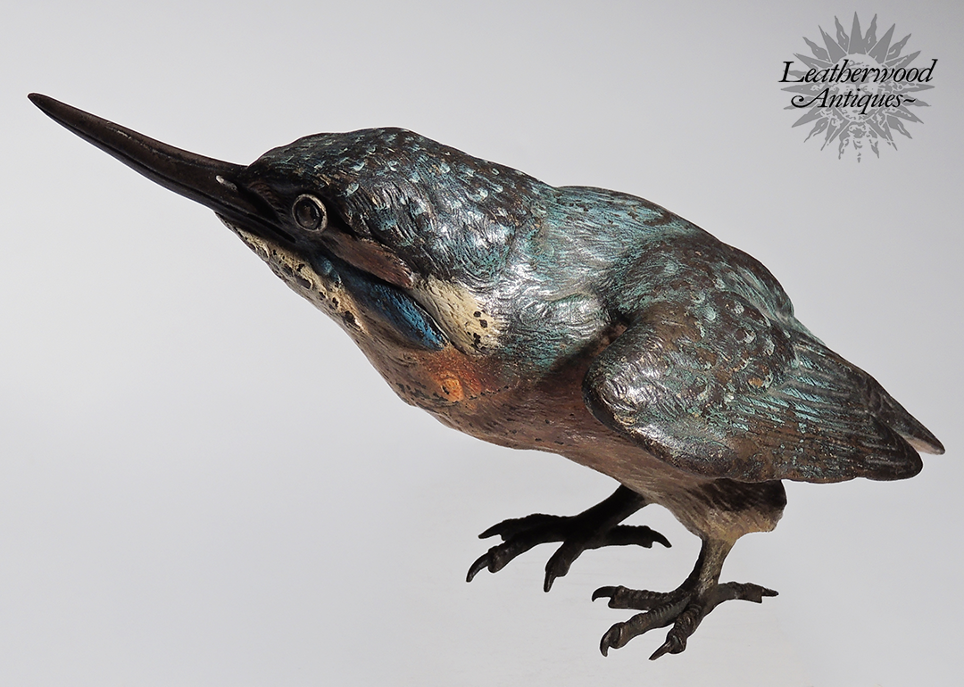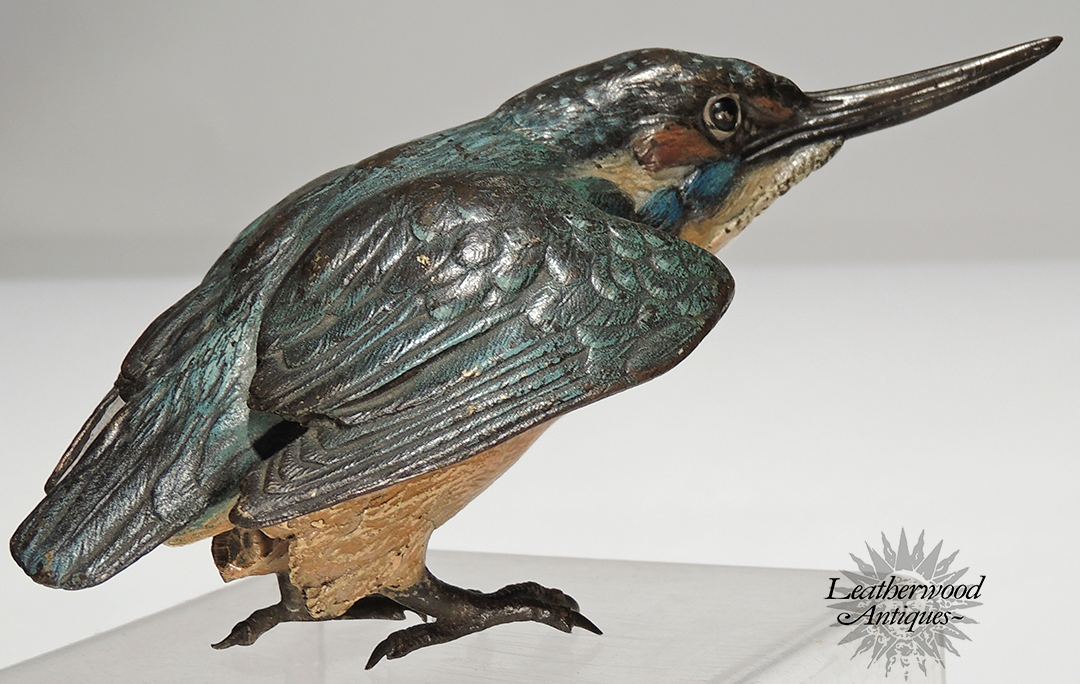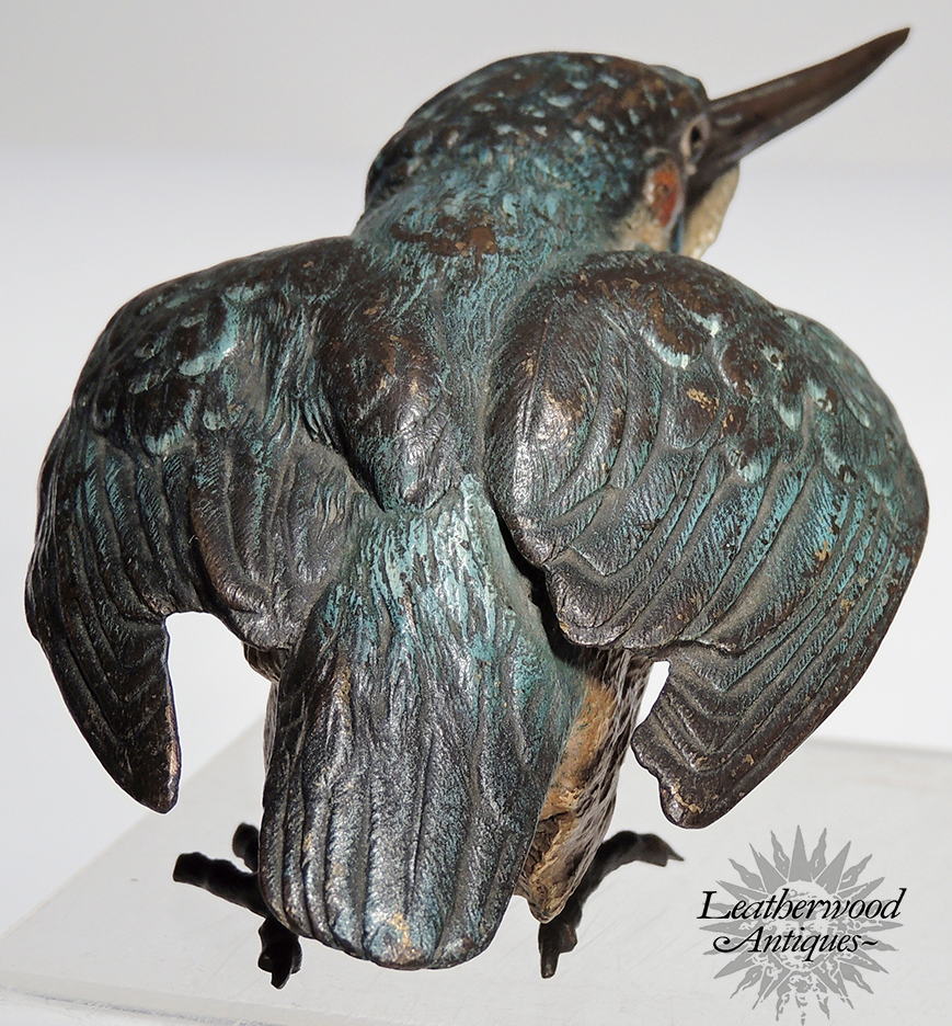 Superb cold-painted Vienna Bronze long-beak blue bird possibly King Fisher in great casting & paint. c. 1900.