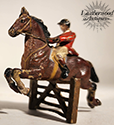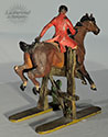 Wonderful VB depicting a dressed hunter on horseback leaping over a fence barrier. c. 1900.