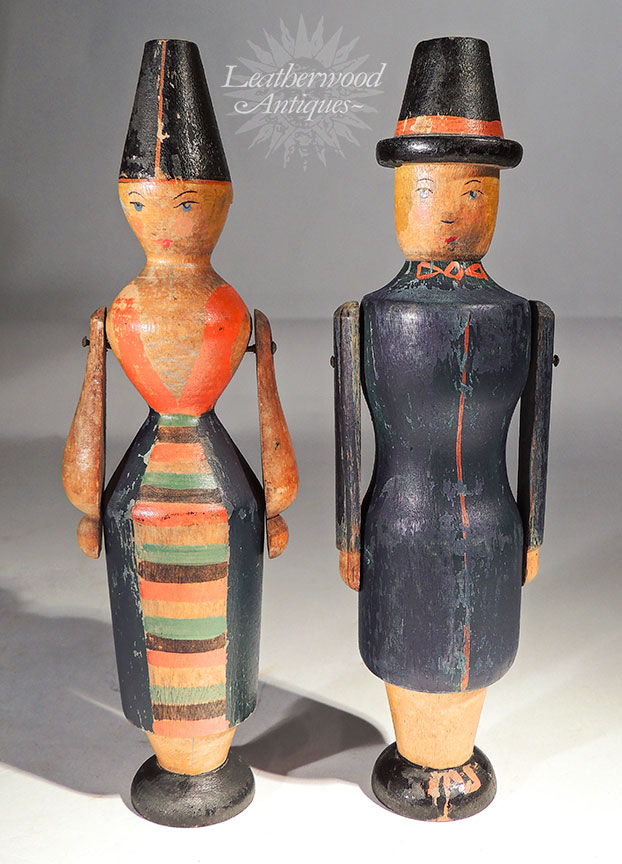 Carved wooden dancing man ( jigger ) with "screw-in" handle. Late 19th Century.