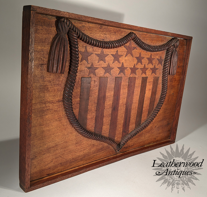 Pair of carved shields with heraldic symbolism. English c. 1800.