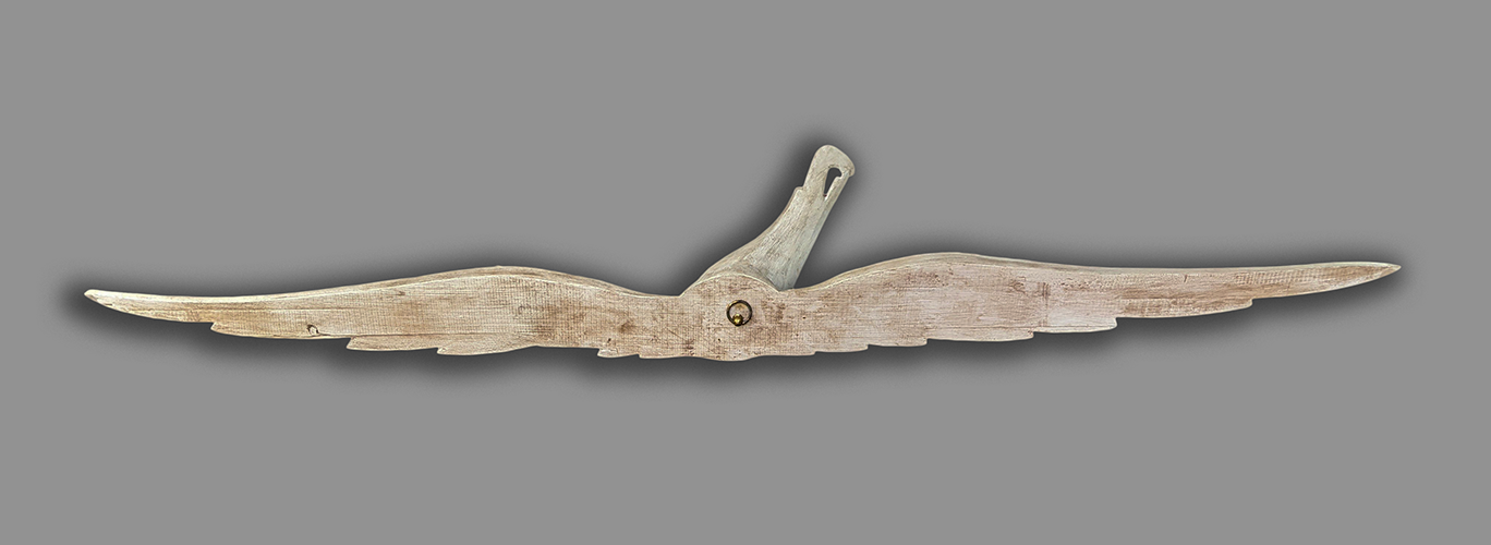 Unusual vintage Swedish carving depicting a bird, with later L-shaped wall hanger for display. A charming fusion of artistry and function.