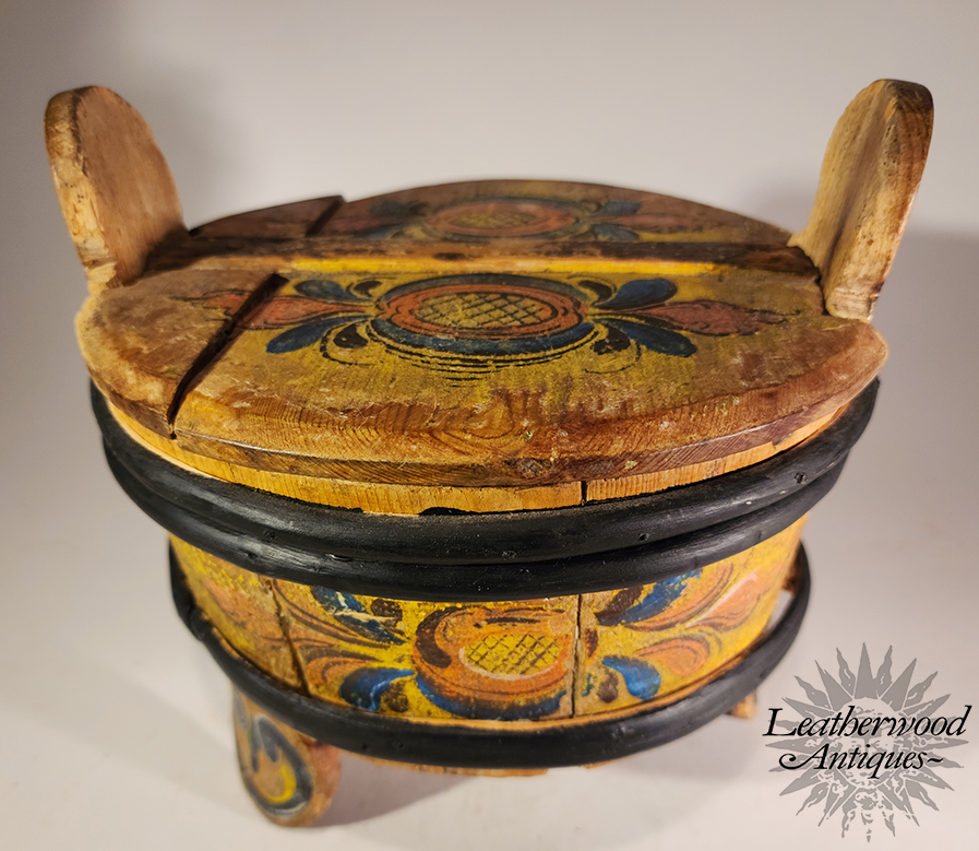 Nice painted Rosemaling bend box. Scandinavian c. 1880.
