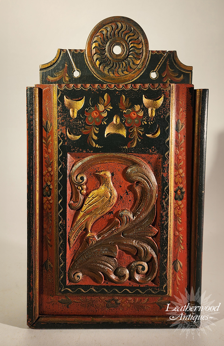 Carved & painted rosemaling piggy bank. Scandinavian, Early 1900's.