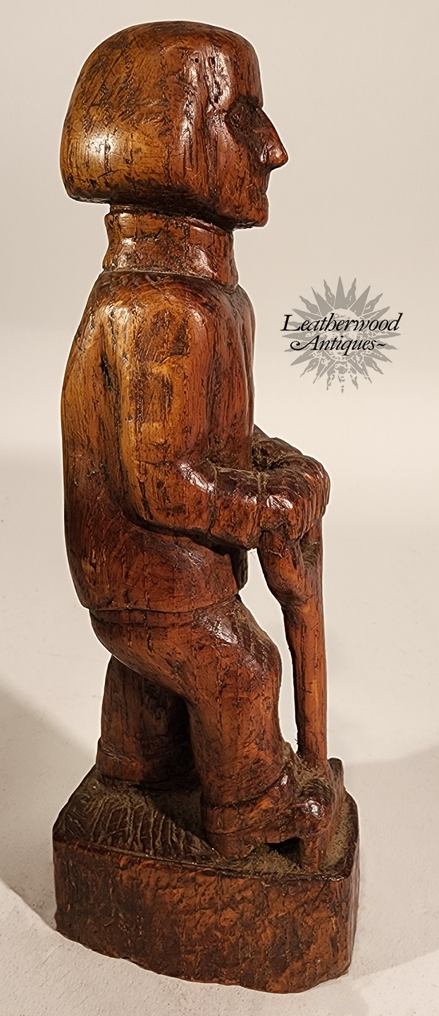 Small folky carving of a man (resembling George Washington) digging with a shovel.