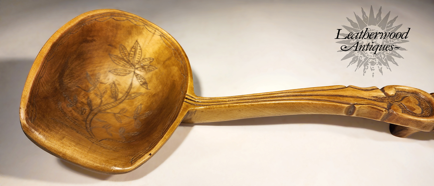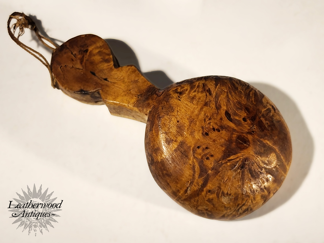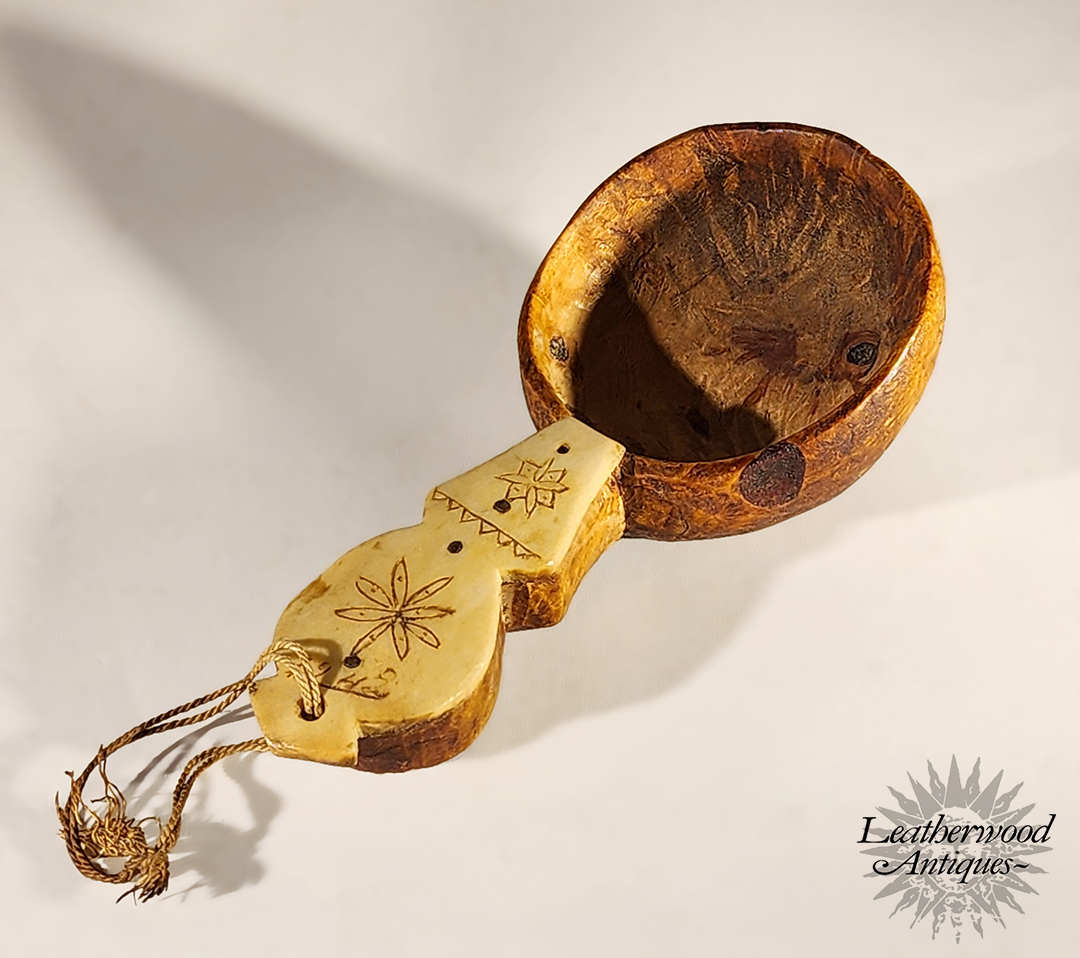 This wonderful Swedish spoon by Sami people (native to the Nordic region) with reindeer antler decorated & dated 1942 & Birch Burl wood.