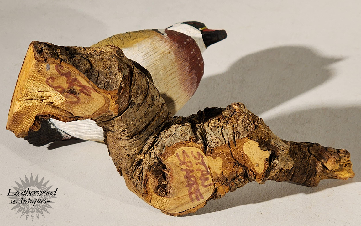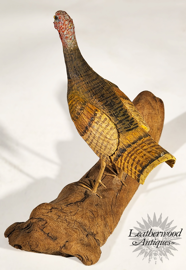 Great old paint on this possibly passenger pigeon decoy c. 1860 on a later base.