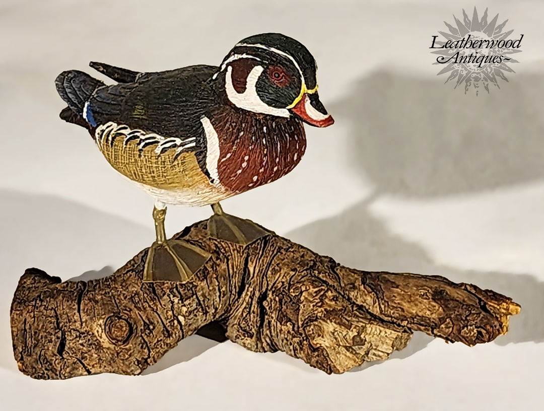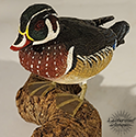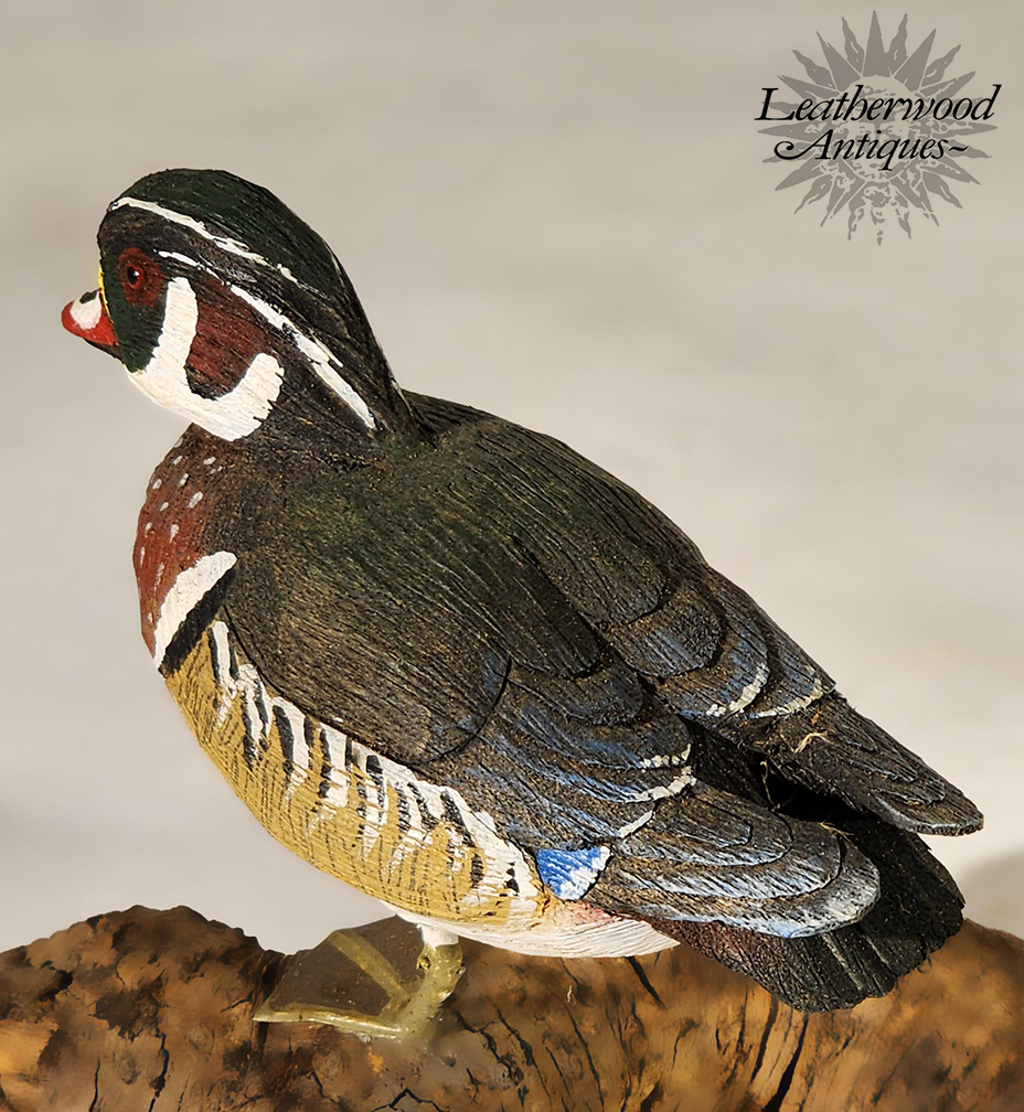 Miniature carved & painted male Wood Duck by Stan Sparre (1923–2011), Cape Cod. Crisp carving and strong color.