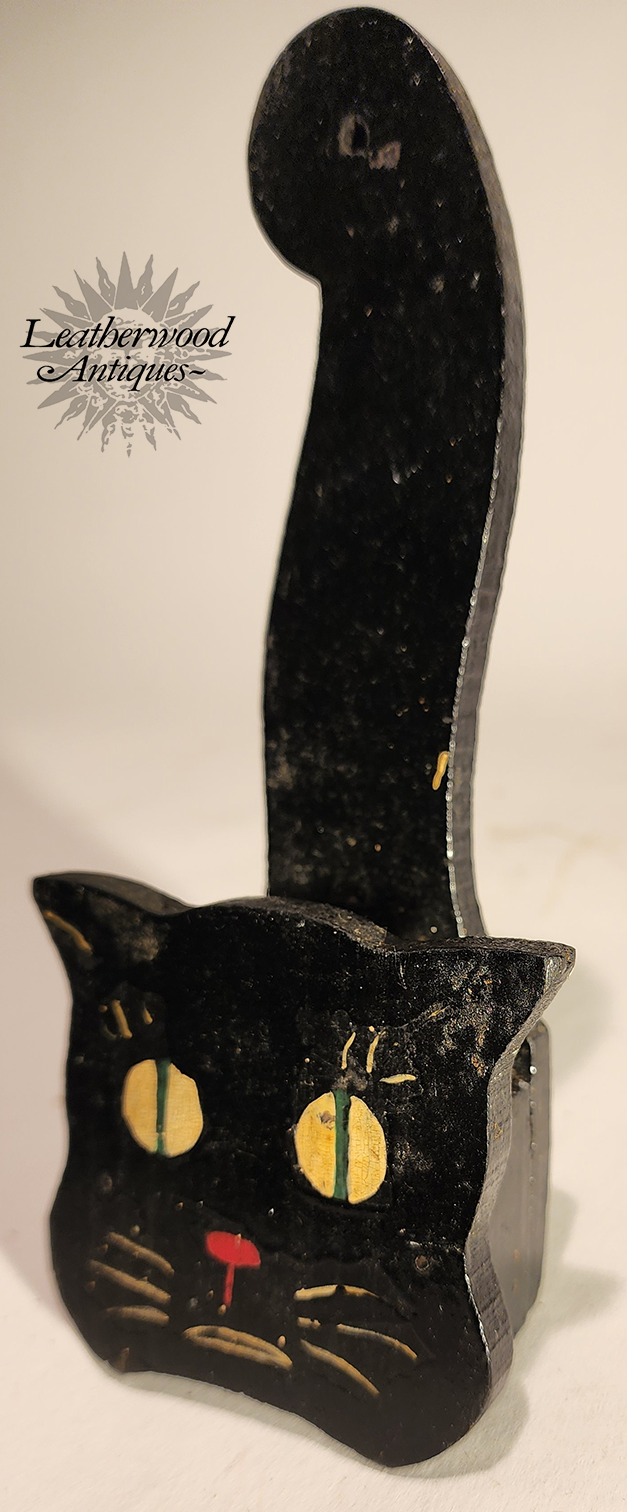 American Folk Art Halloween cat hanging match holder. Early 1900's.