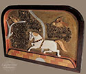 Cutting Board with pair of horse heads. Initials KK inscribed on back lower right-hand.