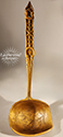 Carved wooden ladle "love token". There is an unreadable inscription on the back. Swedish, 19th Century.