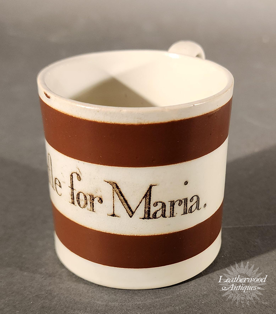 Early christening mug with the inscription “A Trifle for Maria.” A tender, timeworn token of affection. English c. 1820.
