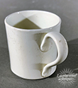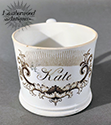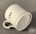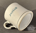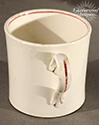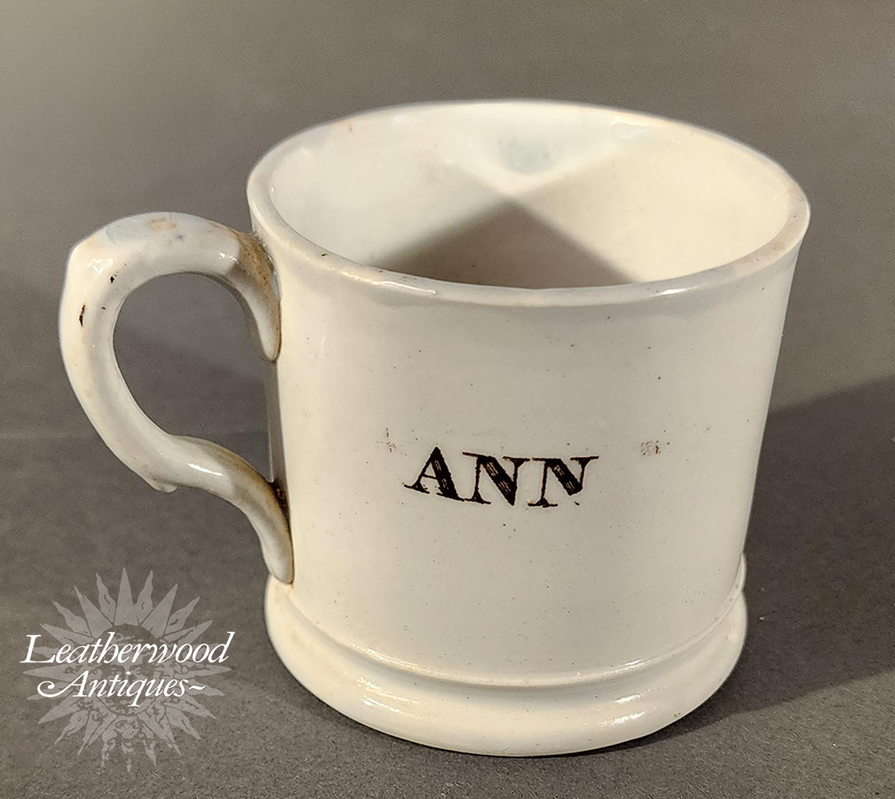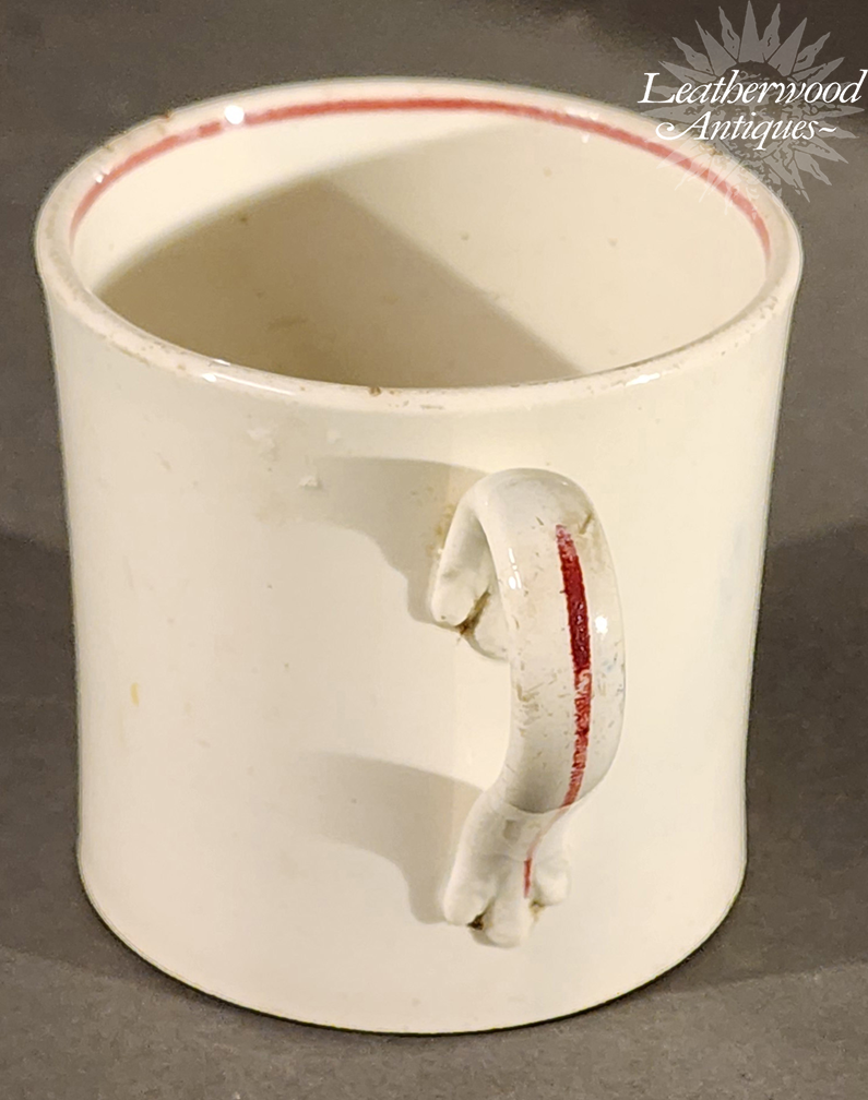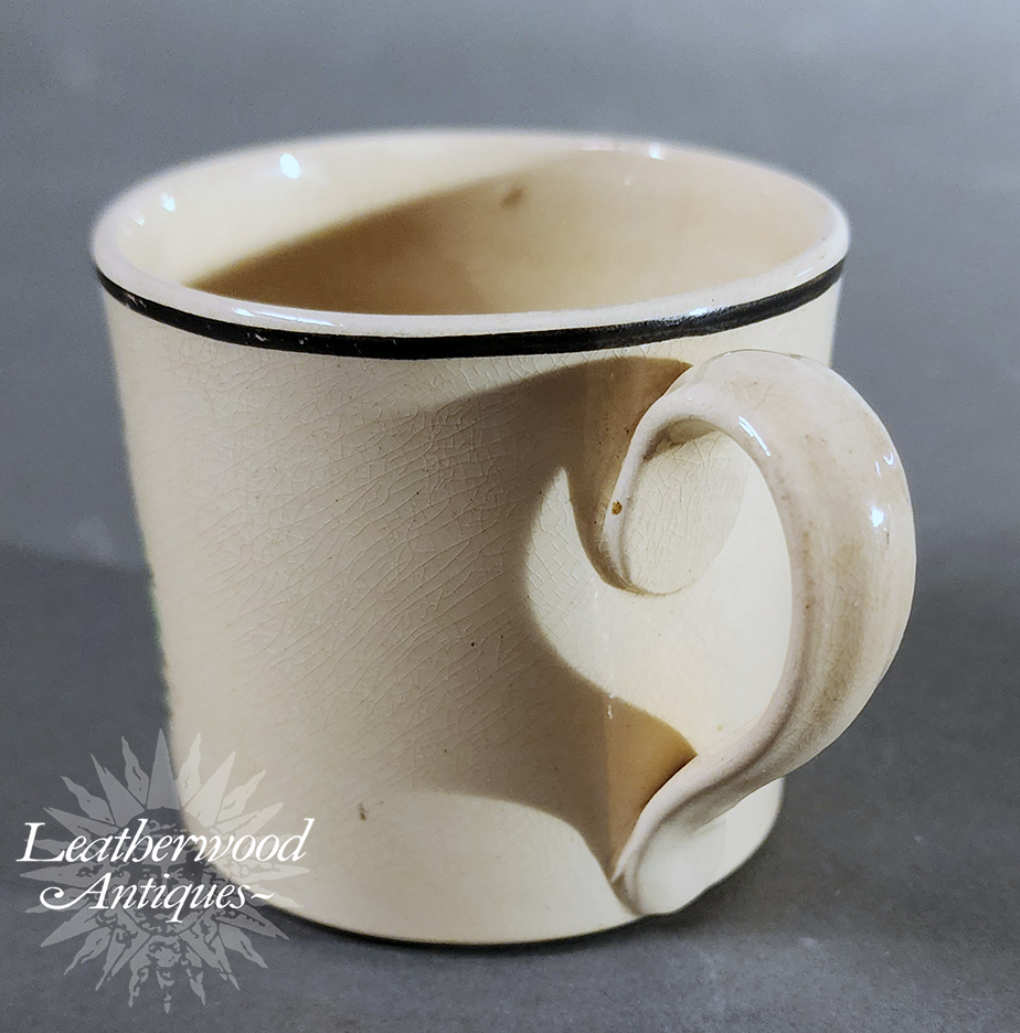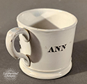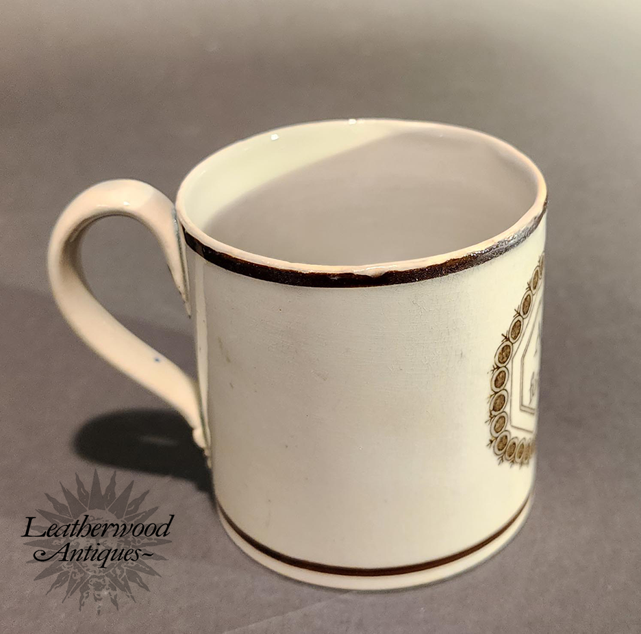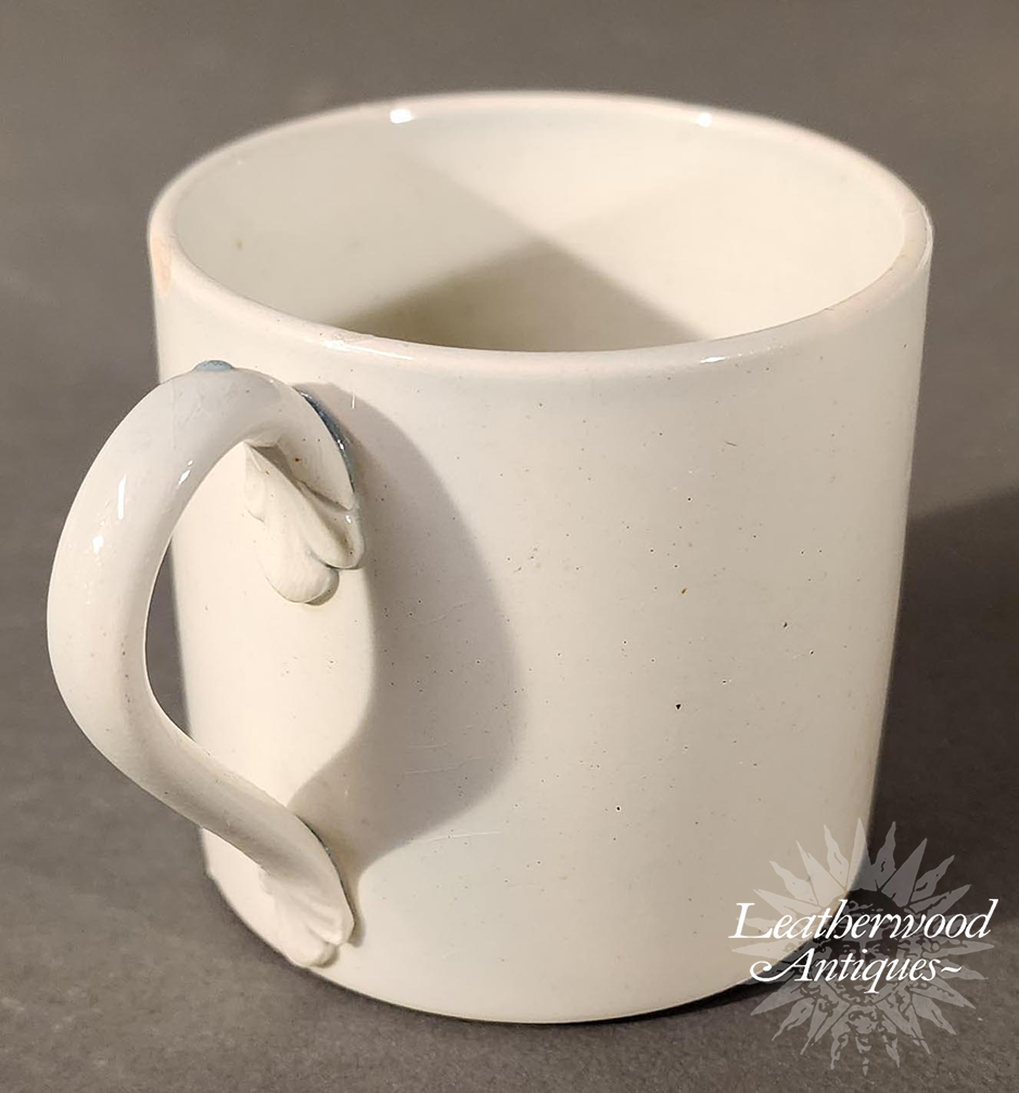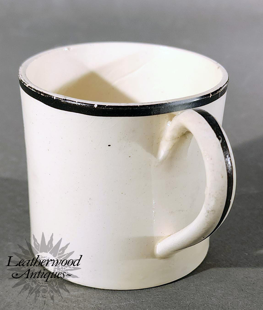 Elegant "creamware child's mug with M" in a cartouche. English c. 1800.