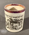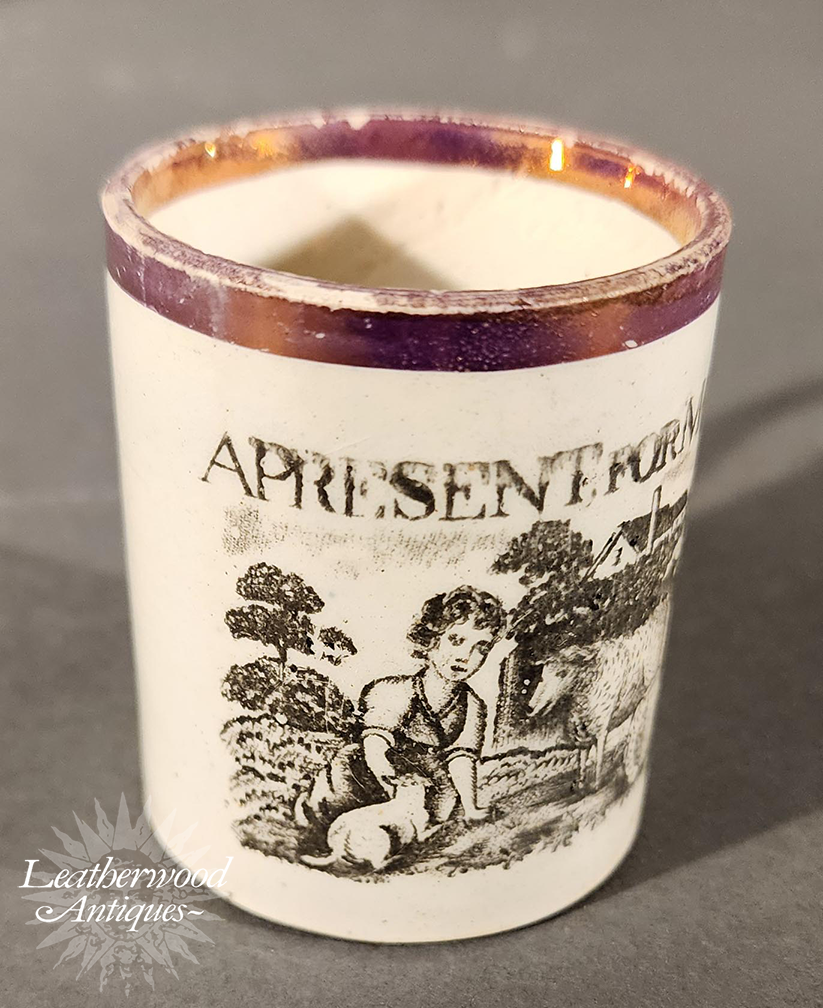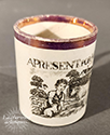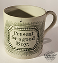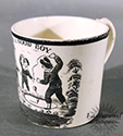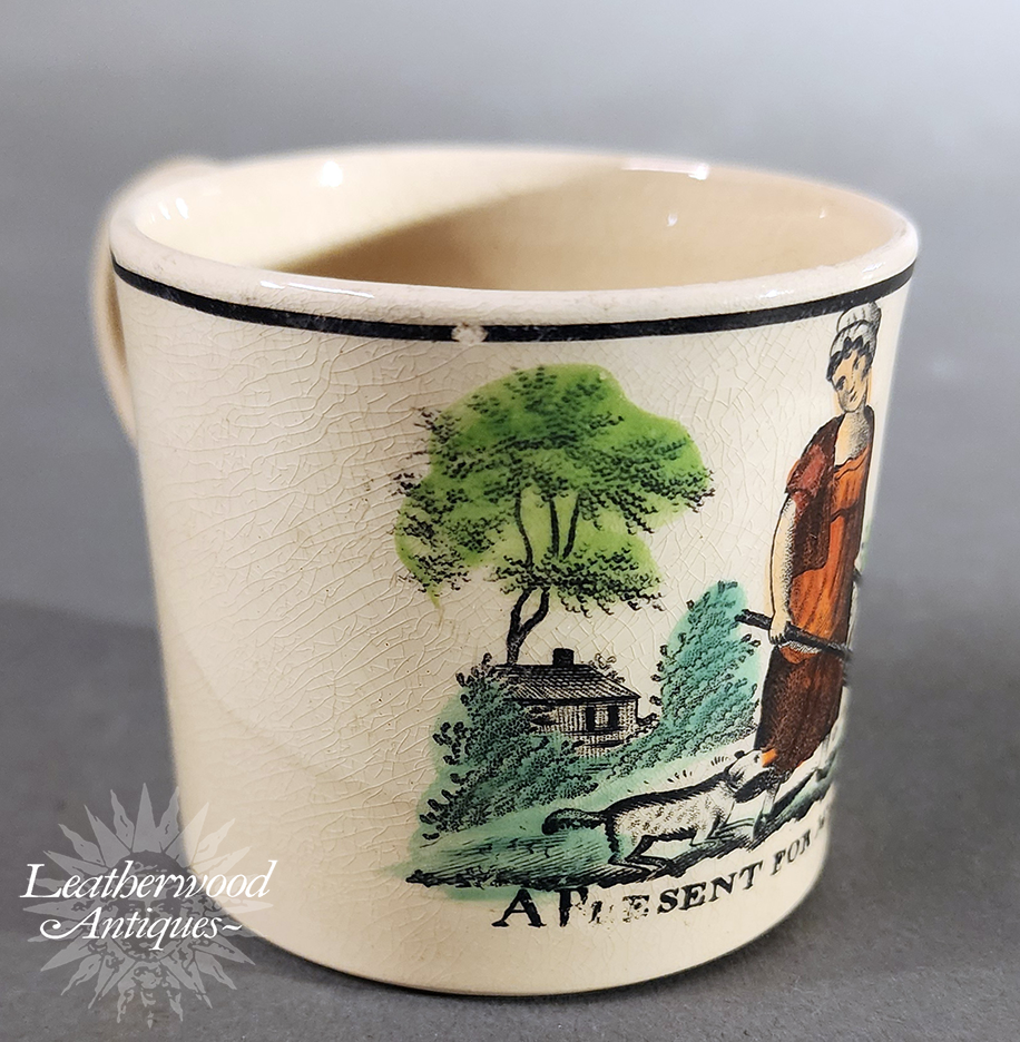 New Year's Gift ~ Staffordshire transfer child's mug. English c. 1860.
