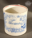 Child's christening mug: Thomas, with a nice transfer & hand coloring. English c. 1840.