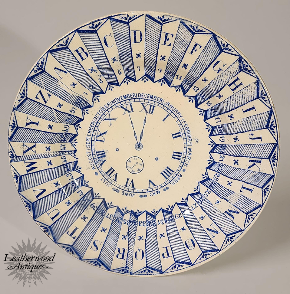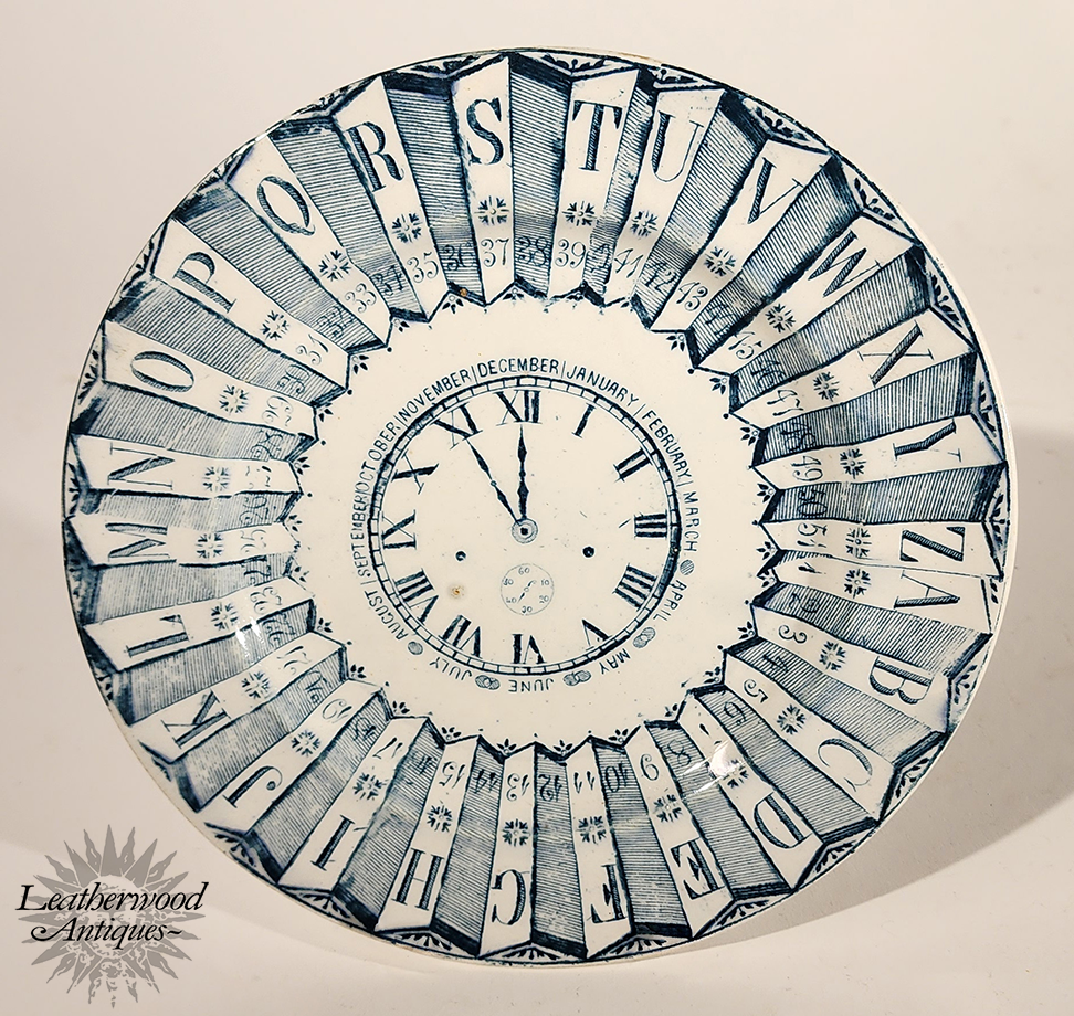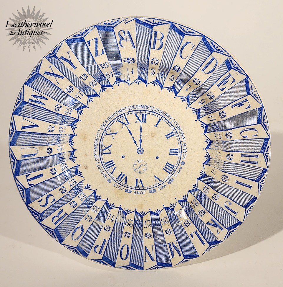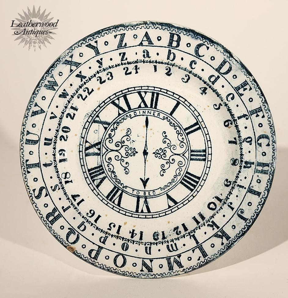Collection of ten 19 c. Pearlware / Staffordshire transfer TIME / CLOCK face child's plates.
