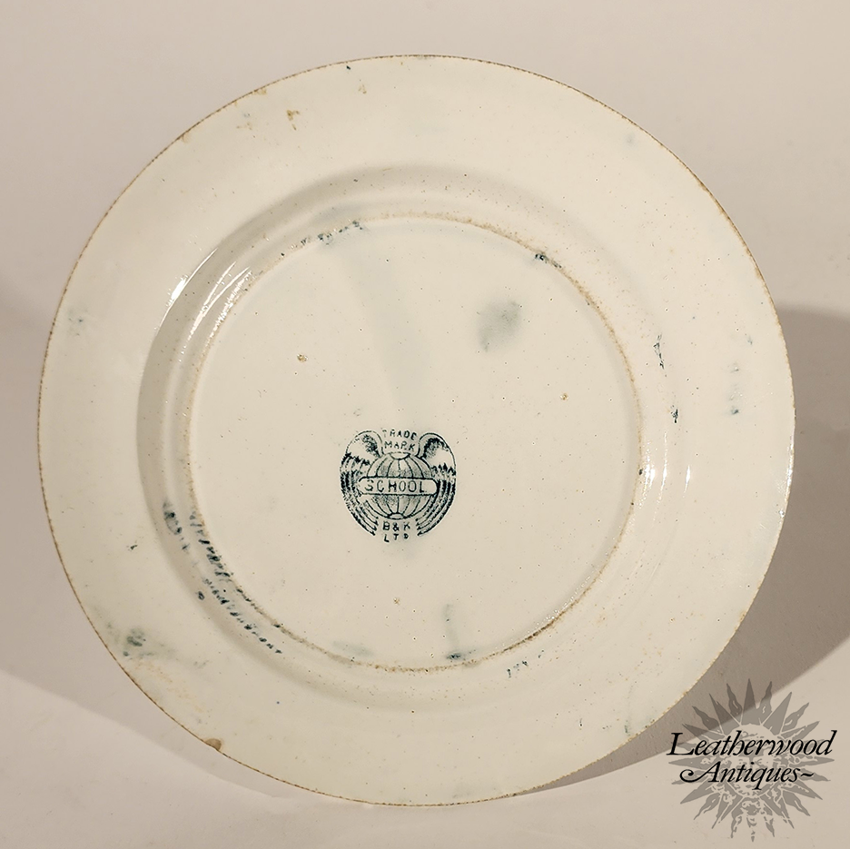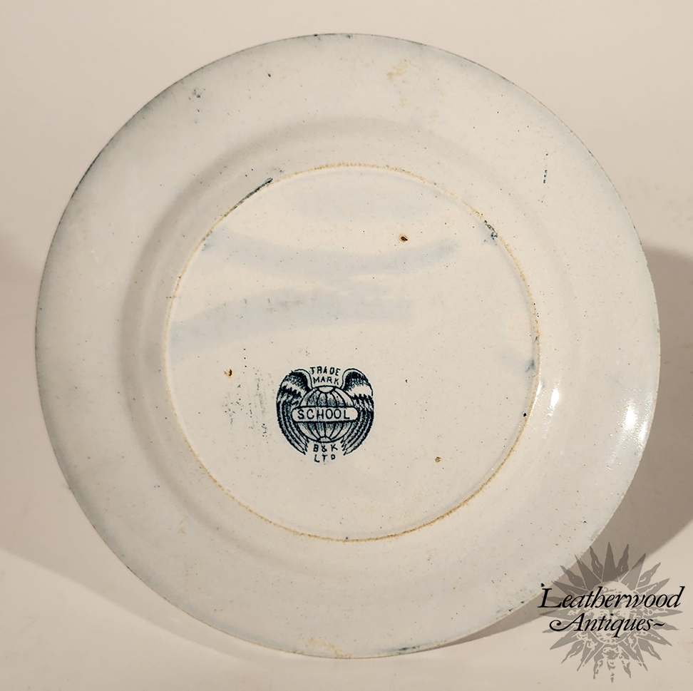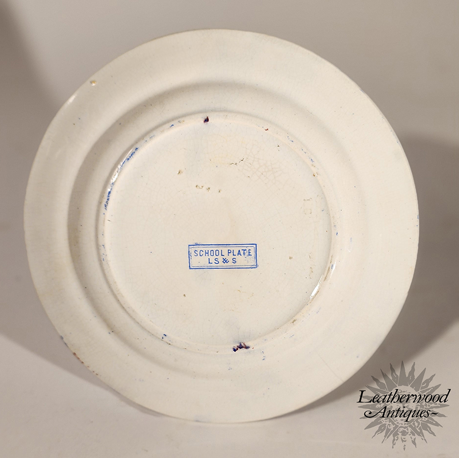 Staffordshire Pearlware Nursery Child’s Plate with the verse ~ Here is a drink my little ass / Mixed with Meal and Hay. And when you take it you can run. / A long the fields to play. c. 1850.