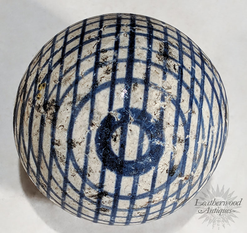 Diminutive rare blue & white carpet ball (some scuffs). c. 1860.