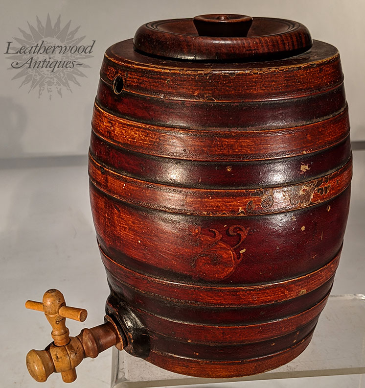Painted stoneware barrel samovar with wooden spigot & cover. Egnlish, Mid-19th Century.
