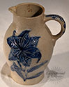 German stoneware jug with blue glaze embossed flower decoration. Mid-19th Century.