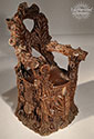 Rare stoneware brown glaze sewer tile tobacco box shaped as faux wood armchair. c. 1880.