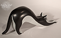 Black & white Mid-Century modernist porcelain sculpture of a stretching cat by Royal Dux Bohemia designed by Koruka; marked underneath.