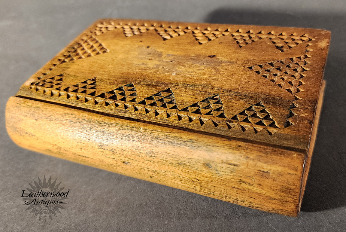Superb 19th c. geometrical carving on this two-tone small carved box. Possibly Scandinavian or American.