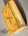 Spruce Gum box decorated on both sides with hearts. One side is inscribed with an anchor & cross penetrating a heart while the other has an inscribed 5-point star encompassed by a circle. American, Late 19th Century.