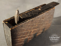 Three-in-one trick box. Faux stack of three boxes (which is one really) probably an apprentice piece. It has a miniature (written in the round) Lords Prayer underneath top lid. c. 1910.