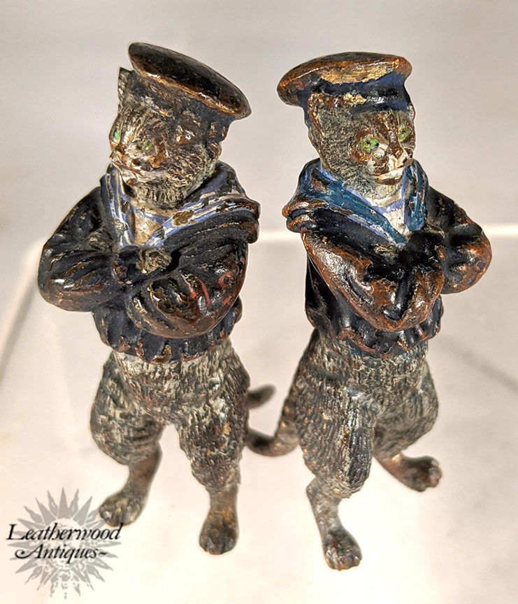 "Ready For Action" ~ Two dressed cat sailors with folding arms posturing. Austria c. 1900