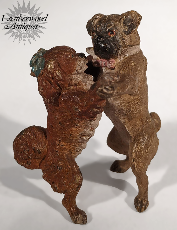Amusing & rare cold-painted VB two (attached) dogs romantically dancing. c. 1900.