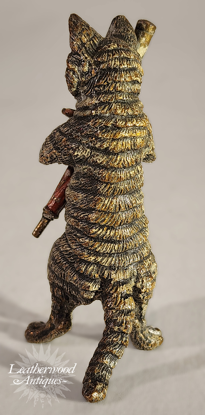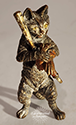 Cute cold-painted Vienna Bronze cat playing a violin. c. 1900.