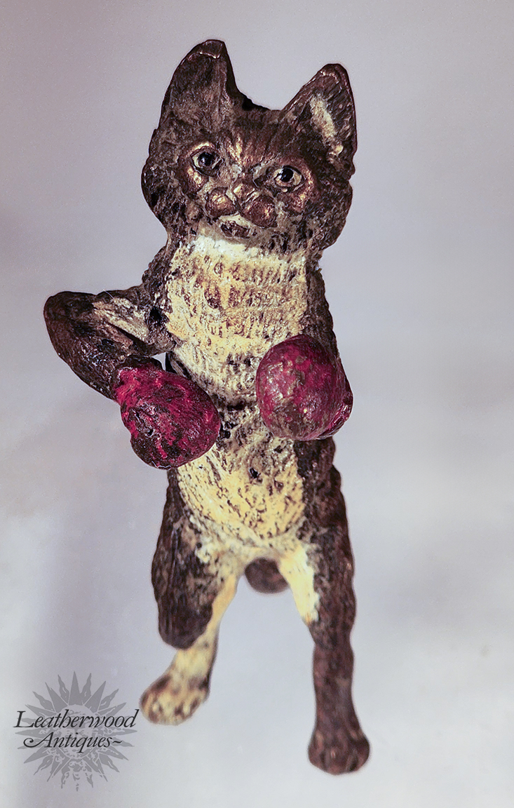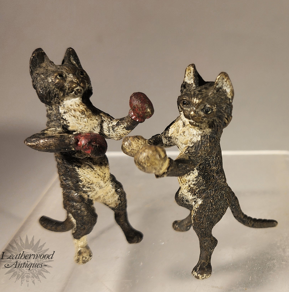 Rare pair of cold-painted Vienna Bronze boxing cats, complete with gloves. c. 1900.