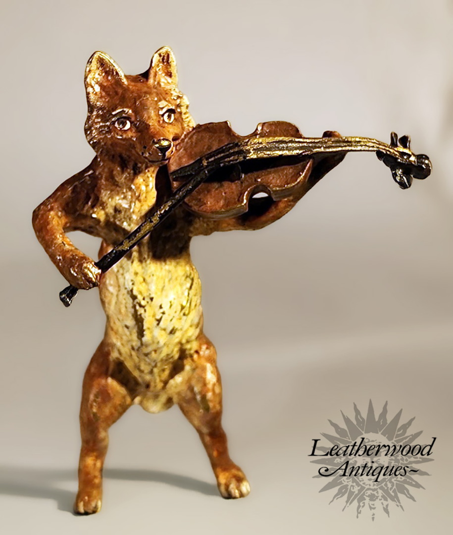 Whimsical miniature Vienna Bronze Fox playing the violin / fiddle. c. 1900.